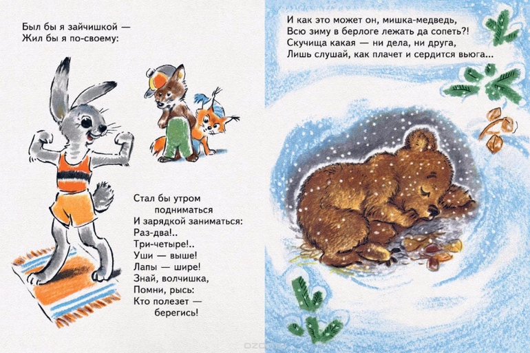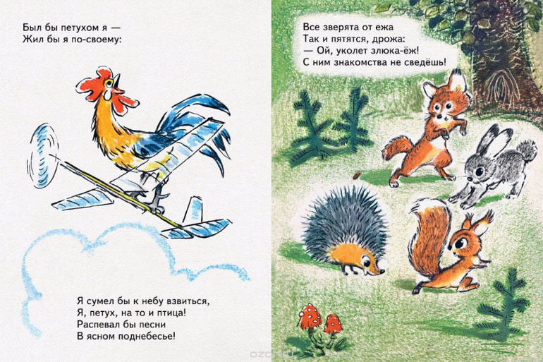 Мы привыкли к тому, что зайчик всех боится, а медвежонок целую зиму спит в берлоге. Что петух хоть и кукарекает громко, но не летает, как другие птицы. Что ёжик - колючий, и гладить его нельзя.