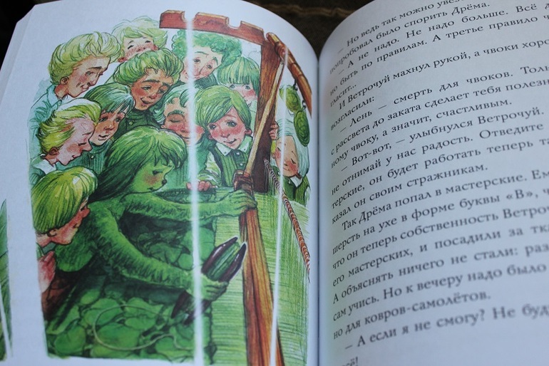 В целом, каждый 3 или 4 разворот содержит картинку - этого достаточно в возрасте 5-7 лет. А вот малышам 3-4 лет - все-таки маловато. Да и текст для них слишком витиеватый. Поэтому лучше следовать рекомендациям «6+», чтобы книге не пришлось пылиться на полке.