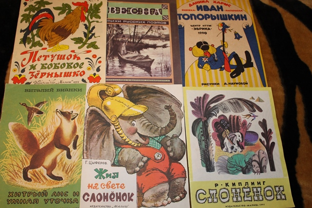 Повезло так повезло ! "Чинк" у меня был, "Девочка и лев" и ""Часы-часики" сохранились, дочке читаю, "Жил слонёнок" купила переизданное, а "На берегу озера " Онегова нашла 20 с лишним лет спустя в переизданном виде "Что на озере растёт" , её хорошо дополнить гляделкой "В пруду и у реки".