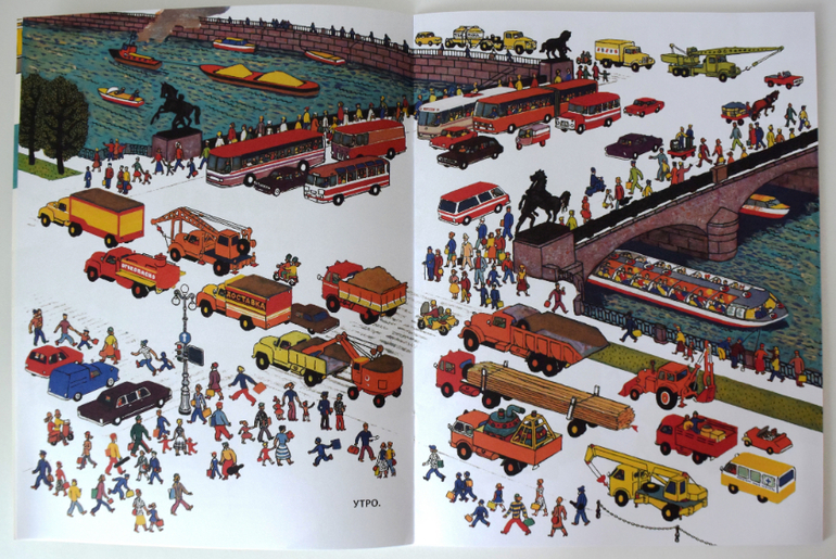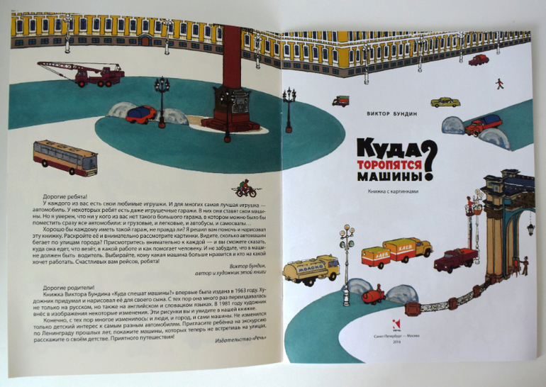 Когда курьер привез данную книжку (заказала племяннику), то столько восторга было у ребят. Стали искать "папины машинки", рассматривать море прохожих, знакомиться с Ленинградом.