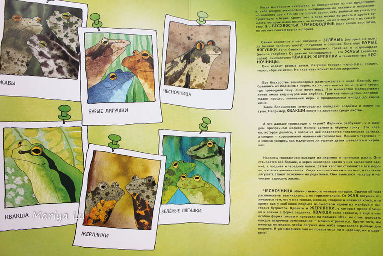 Мы только на днях получили нашу книгу про муравьев - она чудесная, но, глядя на развороты книги о лягушках, я поняла, чего же мне в ней не хватает - разворота с энциклопедической справкой.