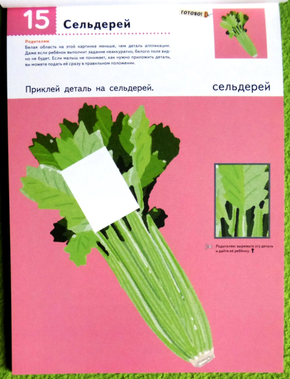 После этого ребёнок будет приклеивать на картинку несколько деталей, выбирая для каждой из них подходящее место.