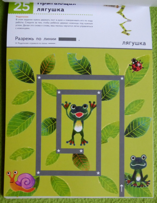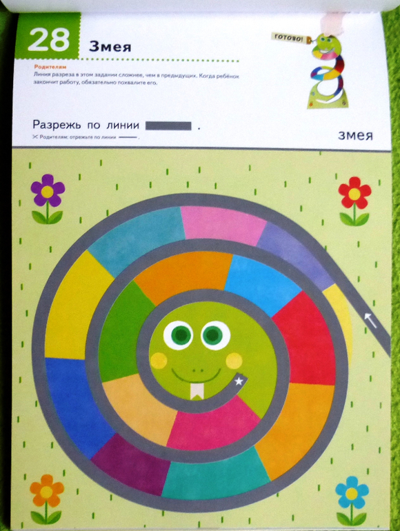 Выполняя задания по этой тетради, ребенок учится работать с ножницами и резать бумагу. Одновременно развивается мелкая моторика рук, улучшается навык работы с ножницами, также малыш научится чувствовать форму. Разрезая лист по прямой, кривой или волнистой линии дети свяжут в своем сознании понятия «прямой» и «изогнутый» с соответствующими формами. Задания в тетради развивают не только умение узнавать фигуры, но и творческие способности.