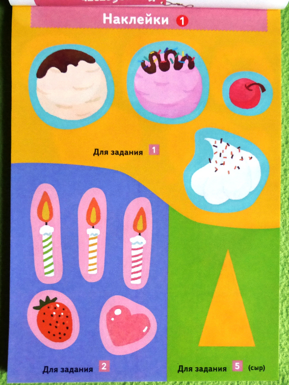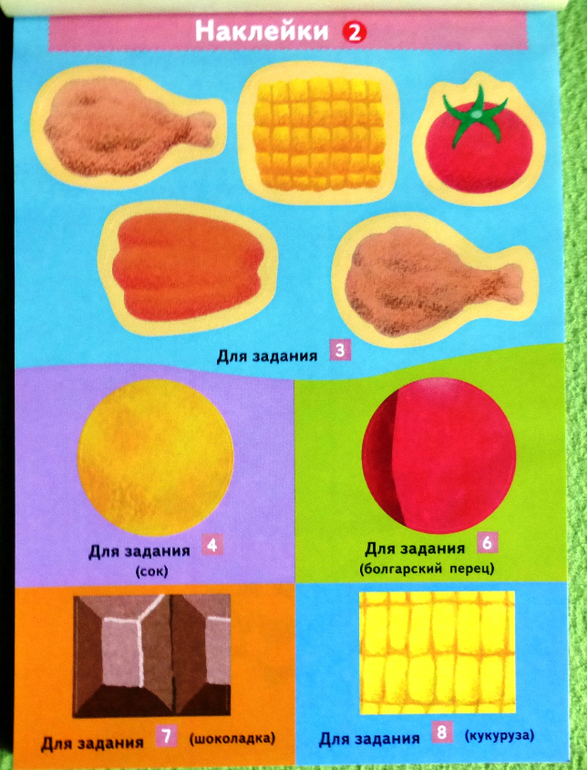 В начале тетради 2 листа с наклейками, которые ребенок приклеивает на первых занятиях по тетради.