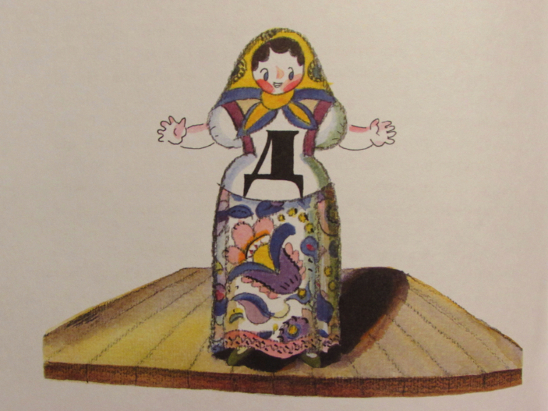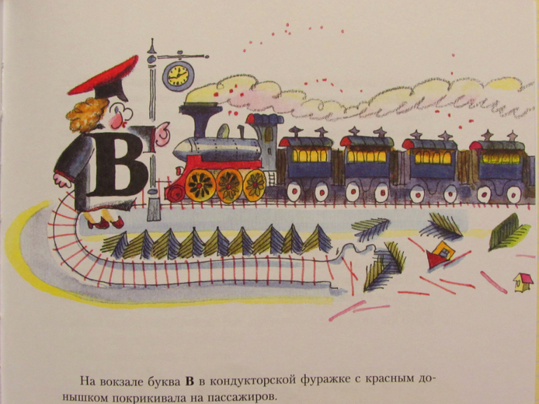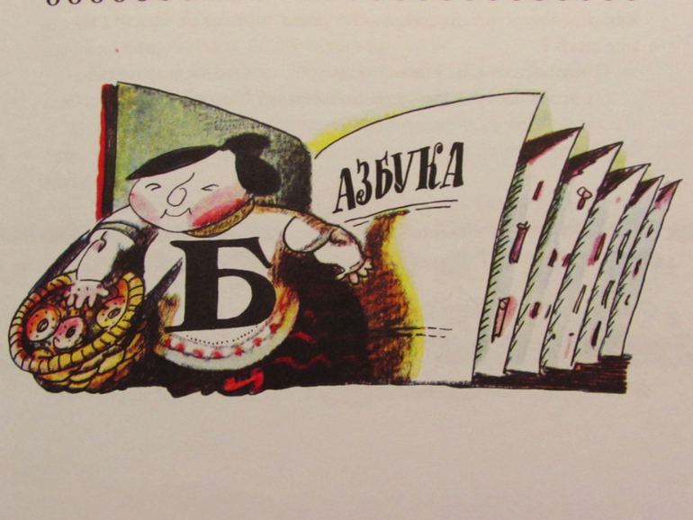 Взявшись за руки, Аля и буква А направились прямо в Букварь. У самого входа дорогу им преградила добродушная с виду буква Б. У нее через плечо висела на ремне огромная корзина.