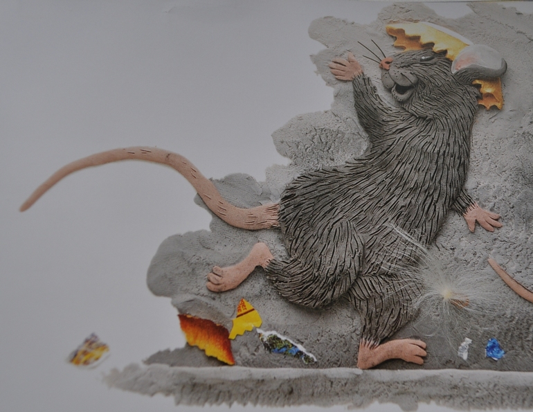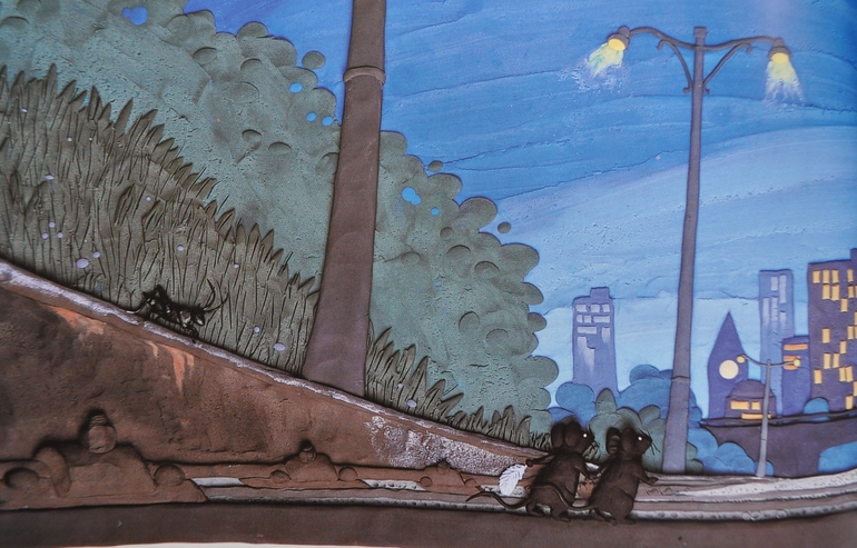 В общем-то, текстовая составляющая этой книги не особо примечательна. Куда интереснее ее художественное оформление. Барбара Рид, автор и художник "Мыши из метро", создавала свои иллюстрации из пластилина, акриловых красок и различных подручных материалов. Как результат - изображения выглядят очень объемными, к некоторым элементам рука так и тянется пощупать, проверить: неужели это просто изображение на бумаге?