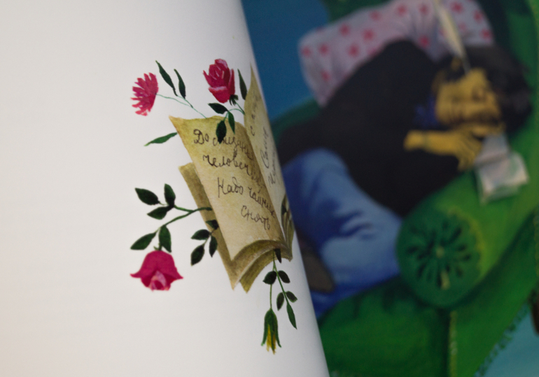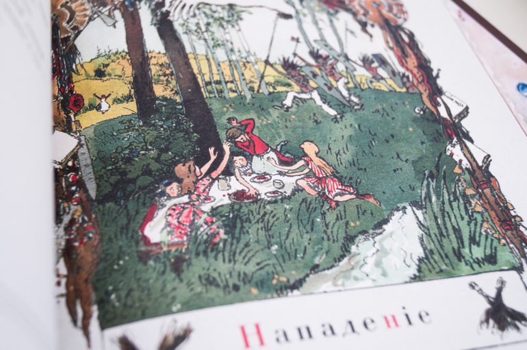 У меня есть два Чёрных и я ещё третьего хочу, с Аземшей. Но начну с этого, потому что он более детский, хоть и проигрывает по содержанию изданию от Августа. Здесь Диодоров. Сочный, яркий, осязаемый, плотный. Очень необычный для меня, привыкшей к его офортам. Здесь - россыпи цветов и пятнышки-листочки, нарочитая статика поз и густые тени. А Чёрный - это Чёрный. С его нестройным ритмом, вытянутыми строчками, ласковым и резким словом, и восклицательными! и многоточиями..