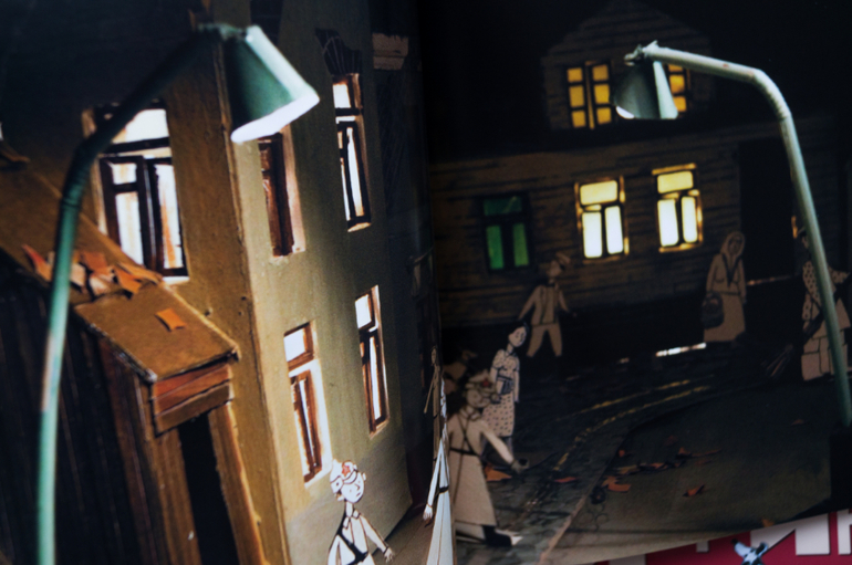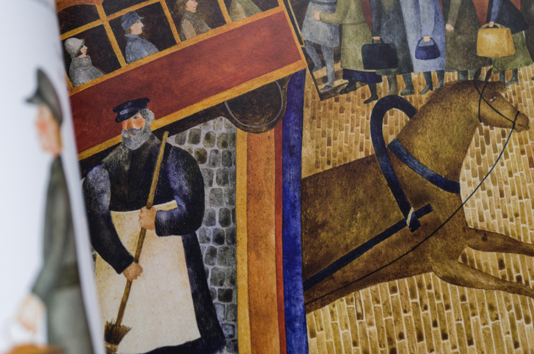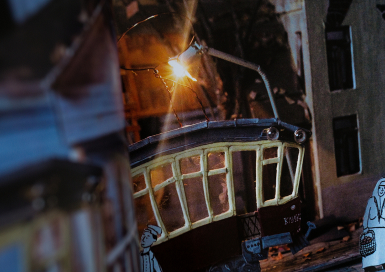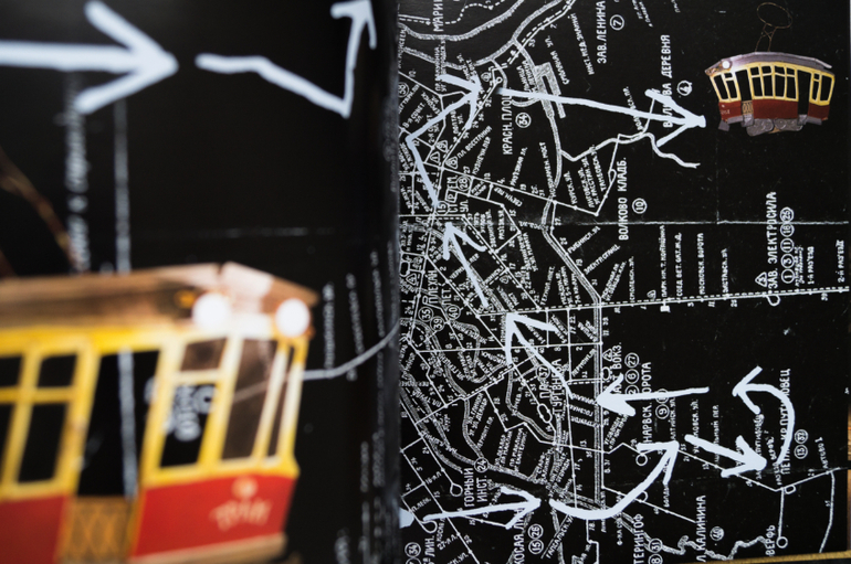 Весь прошлый год мы прожили по соседству с трамвайным депо. И каждый день мой список дел выглядел примерно так: купить хлеба, помыть посуду, сфоткать Мандельштама в депо. Так и переехали, и Осип охрип у меня без трамваев. А это целый мир ведь! И мир этот оживает в руках Десницкой. Я помню, как маленькая ходила в краеведческий музей. И там была картонная панорама Иркутска времён революции. Снег-вата на голых ветках, ошмётки стёкол в домах-макетах, подсвеченные изнутри тусклыми лампами. И эта книга в точности такая - тёплая ламповая. Двумерные люди в объёмном пространстве старых улиц. Проблески рельсов, листья на обочине, светотени на облезлой стене, кругляши фонарей сквозь мутное стекло. Живое. Тудуц-тудуц-тррр, слышите, трамвай делает скрипучий поворот? Прищуриваешься, фары в лицо. Тишина тёплой ночи, не пригодилась куртка и домой не спеша. И месяца ломоть на ветках.