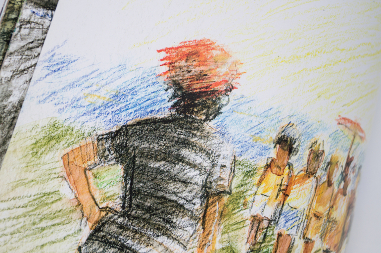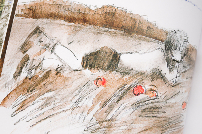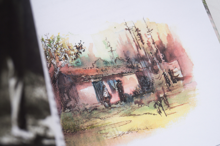А Марголис берёт воды на кисть и пятнами сепии идёт по рельефу бумаги. И кажется, тронешь чуть сильно - пойдут под пальцами катышки. И кто-то сказал бы, что мрачно. А знаете, что мне сразу на ум приходит? Игрушки из антикварной ваты. Такие неправильные и кривые, с бугристой корочкой сверху. Их красили раньше медовыми красками. И на ёлку. Трогательных, грустных и волшебных - куколок, зайчиков, ангелят.