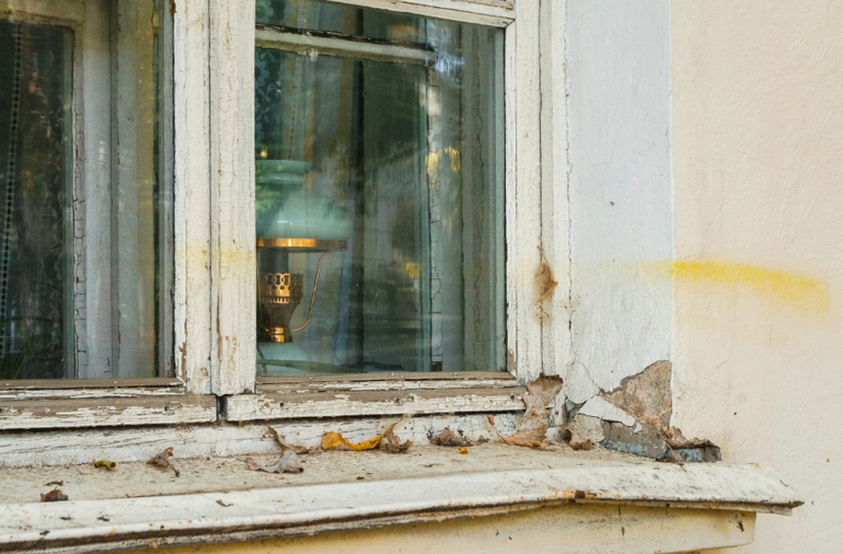 В соседнем доме окна жолты.