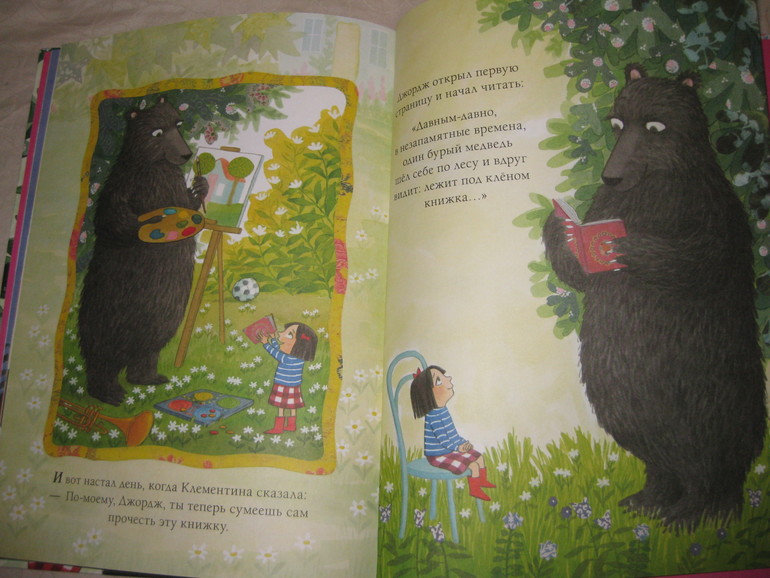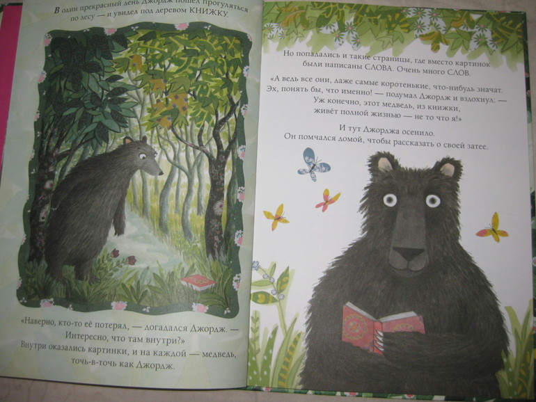 Про медвеженка котрый любил читать книжки - милая добрая история, хорошие картинки.