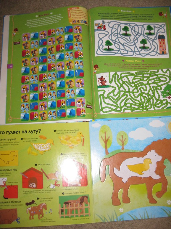 Книга с трафаретами и заданиями к ним, очень плотный картон.