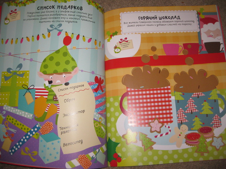 Книга с новогодними заданиями, мелованная бумага и много-много наклеек, будет чем заняться на каникулах.