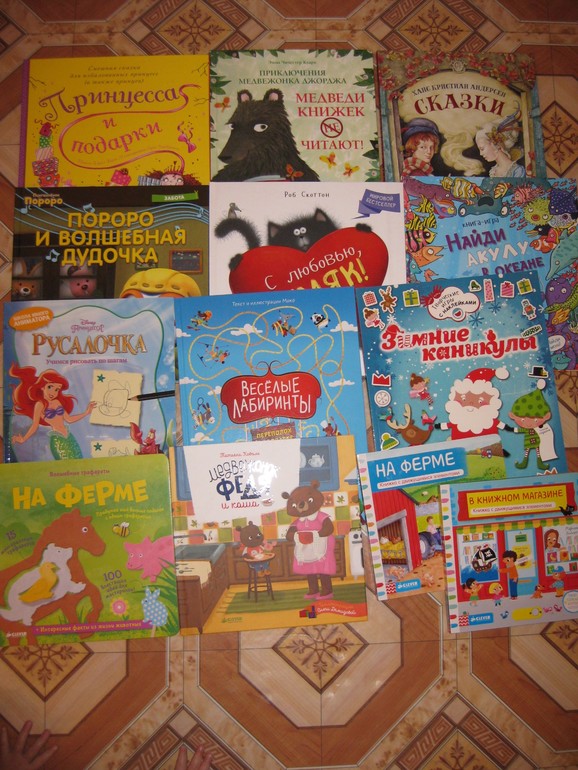 Еще забыла сфоткать 3 тонкие книжки с наклейками.