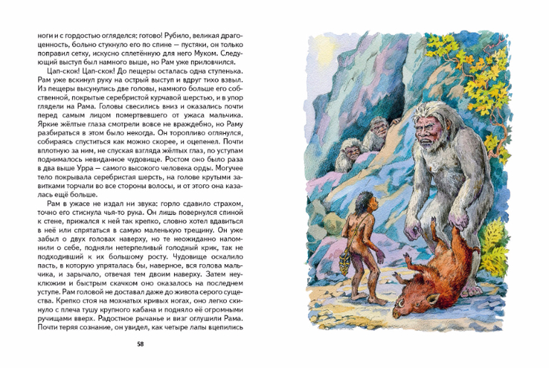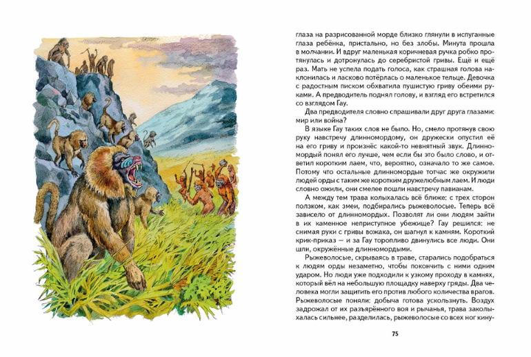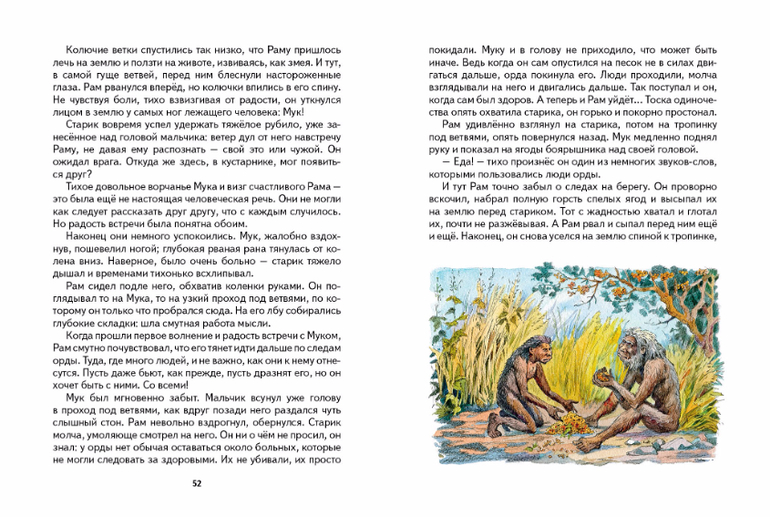 Это произошло около миллиона лет тому назад, когда на Земле не было ни самолётов, ни железных дорог, ни городов. Не было людей таких, как мы с вами. В лесах бродили первые люди, произошедшие от обезьян. Учёные их называют обезьянолюдьми. Жизнь они вели трудную, полную опасностей, сражались с дикими зверями, страдали от холода и часто от голода. В этой повести увлекательно рассказывается о жизни обезьянолюдей - первой ступени развития человека. Герои книги шаг за шагом учатся не бояться огня, поддерживать и добывать его, высекая искры из камня. Обезьянолюди ещё не умеют говорить, но в ряде их поступков уже проявляются первые проблески человечности. И эта человечность - первая улыбка первобытного человека, первая забота о слабых, благодарность за помощь - красной нитью проходит через всю книгу."