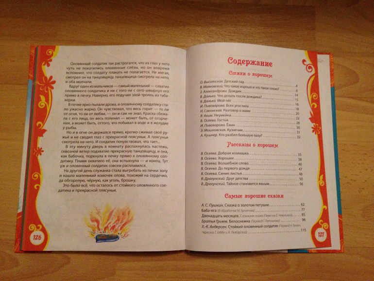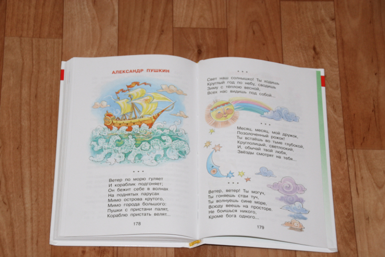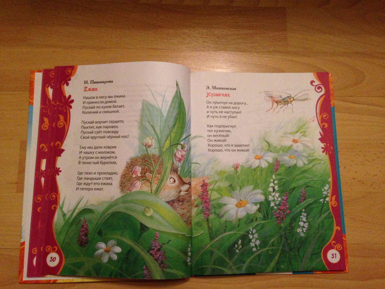 Мы из хрестоматий много авторов открыли. Опять же, ребенок в саду учил стихи Пушкина, Бальмонта про осень. Половину помнит, половину забыла. Расстроилась. Так приятно открыть хрестоматию и там эти стихи найти. Пушкина-то я на 4 года как-то не покупала еще. Можно конечно и в интернет залезть, но это все не то.