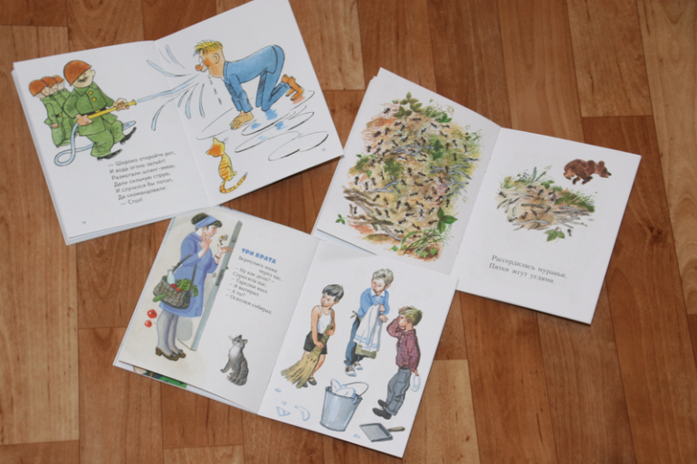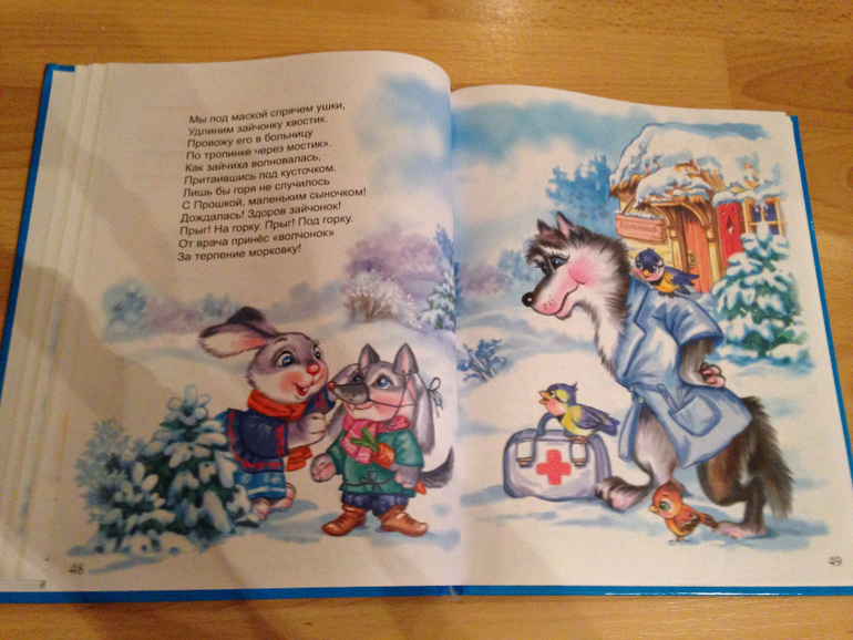«Почитай-ка малышам». Тут много разных потешек, стишков, считалок, загадок. Есть несколько рассказов в прозе. Иллюстрации компьютерные, мне не нравятся. Но Ника эту книгу любит. Любимое стихотворение «Каша», всегда над ним смеется. Еще ей нравятся «Лесная больница», «Пропажа»