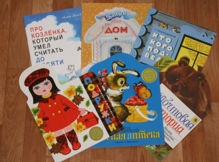 Эти книги живут у бабушки. (Поэтому в общей стопочке их нет.) Какие-то отвезли потому что Ника уже выросла, какие-то бабушка специально купила, чтоб было что почитать, когда Ника у нее гостит.