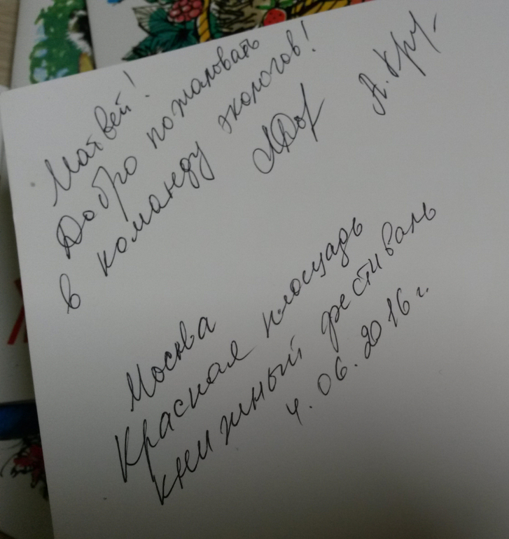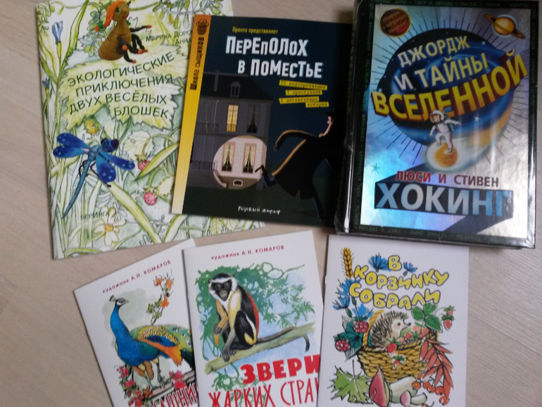 1. М. Дороченкова, А.Кравчук. Экологические приключения двух веселы блошек (изд-во БерИнга) - сын был в шоке от того, что сами писатели стоят и продают свои книги, торжественно принимают в команду экологов, раздают автографы. По этой причине и осталась книга у него в руках:)). А потом ему еще интересны насекомые...Обещал прочесть. Жду, когда обещание исполнит