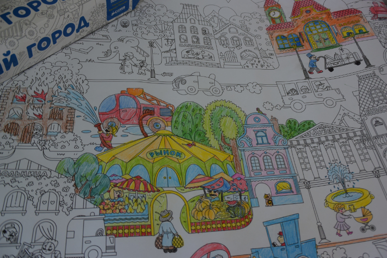 Мой любимый город - мой антидепрессант. Раскрашиваю, и дети подтягиваются. Целый рулончик (45х100см) умиротворения:))). Покупала уже парочку раскрасок из этой серии в подарки. Вот и у нас тоже поселился Город. Пока в процессе...