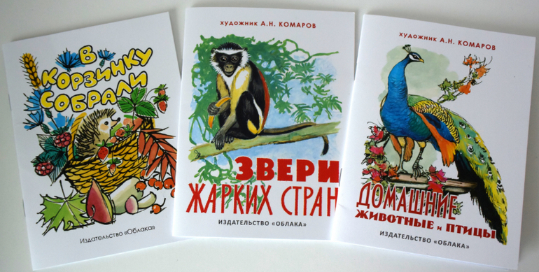 Дочка в начале лета у нас начинала говорить, поэтому именно эти книжки оказались как никогда кстати. И по сегодняшний день просит показывать пальцем, а она называет зверей, птиц (недавно купила еще одну книжечку с Комаровым. Тоже на ярмарке - ММКВЯ). Путается в ягуарах-гепардах-пумах. Но ее возрасту это простительно:)) А "В корзинку собрали" очень пиратке Саша понравился. Эту книжицу много-много раз перечитывали и продолжаем читать.