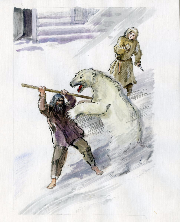 В 1797 году, около 200 лет назад, вышел в море на охоту за морским зверем такой карбас. Кормчим на нём был опытный моряк Алексей Химков. Взял он с собой, в первый раз, сына-подростка Ванюшку. Случилось так, что их карбас захватила осенняя поздняя буря и занесла к самому Шпицбергену. Шесть долгих лет они прожили на острове и вернулись домой. Об их трудной жизни, опасных и удивительных приключениях рассказано в этой повести."