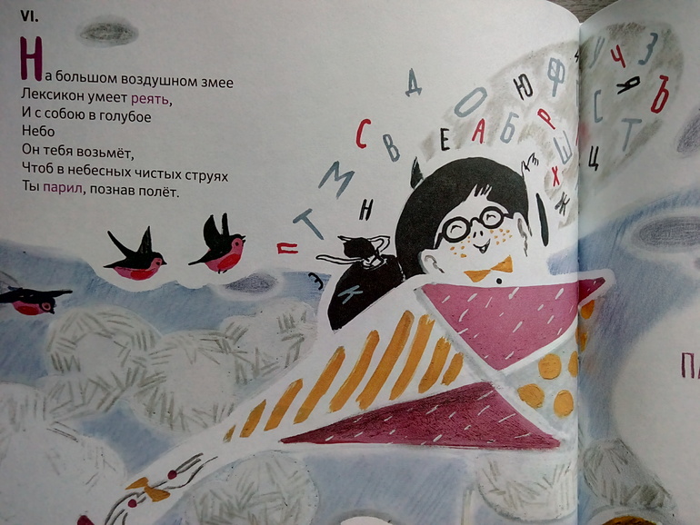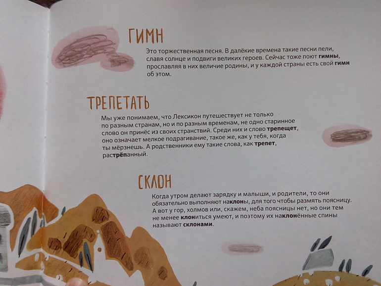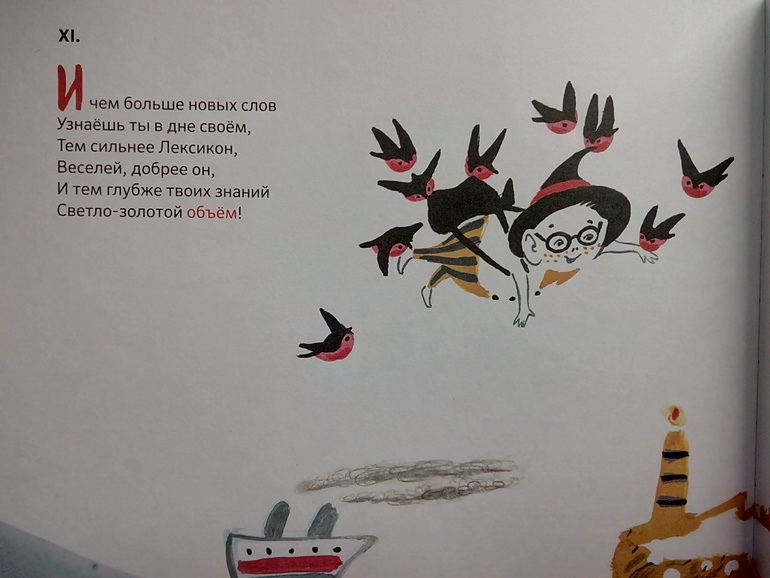 И вот летом нам в руки попала книга "Лексикон". Идея просто-просто-просто шикарная - стихотворение, в котором вплетены разные интересные слова для обогащения нашей речи. Объяснение значения слов приводится тут же: слева - стихотворение, справа - объяснение.
