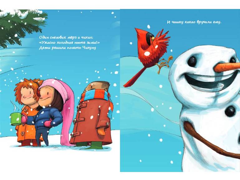 Веселая и красочная новогодняя книга о том, как большой Снеговик однажды простудился. Дети очень старались ему помочь и перепробовали все, чем их обычно согревали родители: напоили его горячим какао, отдали ему теплую шапку, шарф и даже курточку... но Снеговику становилось все хуже и хуже. Несколько раз он превращался в грустную лужицу, и ребята лепили его снова и снова. И тут один малыш сообразил, как помочь Снеговику...