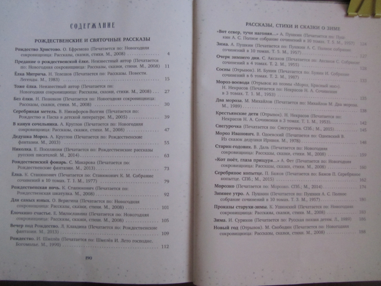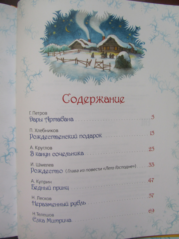Вообще конечно содержание в книге очень богатое - этакая новогодняя хрестоматия, нужная книга я считаю в домашней библиотеке. Однако конечно как и некоторых меня смущает рассказ Николка,тяжело детям такое читать и объяснить, хотя и подразумевается в рассказе чудо рождественской ночи. В целом книга рассчитана на широкий круг читателя, стихи и сказки можно читать и дошкольникам,а вот некоторые рассказы подойдут даже школьникам младших и средних классов.