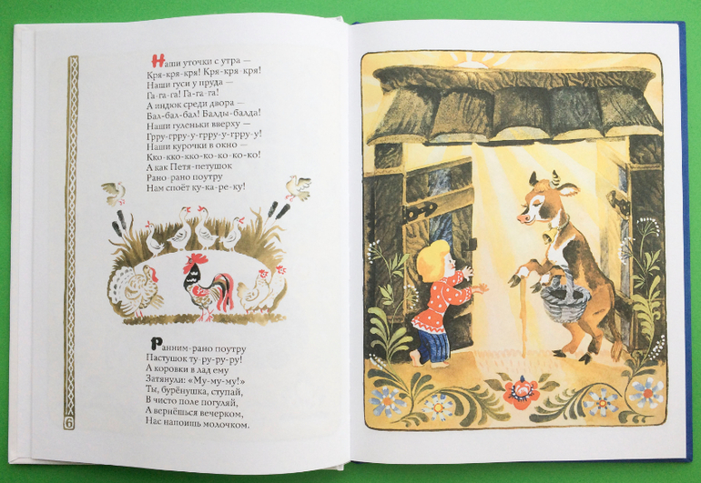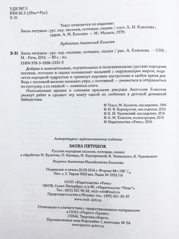 Но тут Речь выпускает потрясающий сборник "Запел петушок" с чудесными иллюстрациями Елисеева! Это была любовь с первого взгляда (потому что детского взгляда, вроде, не было)! Он такой...такой! Я прямо пританцовывала от восторга, когда показывала мужу с ребенком! И они тоже оценили, и потребовали сразу читать)