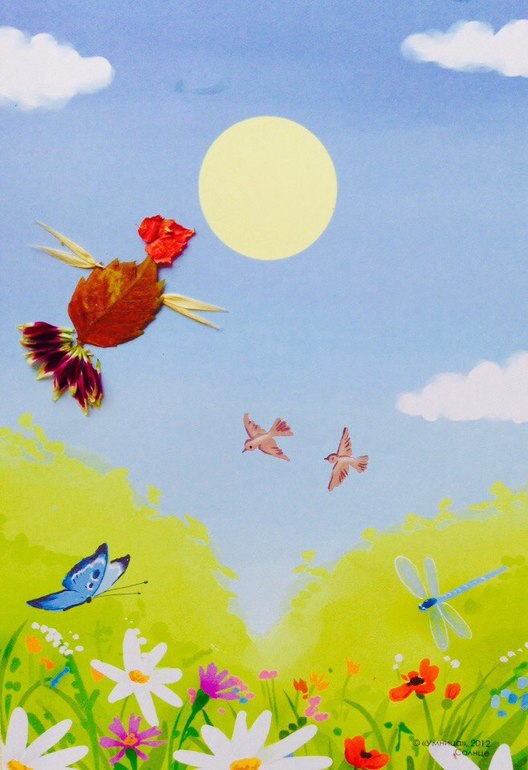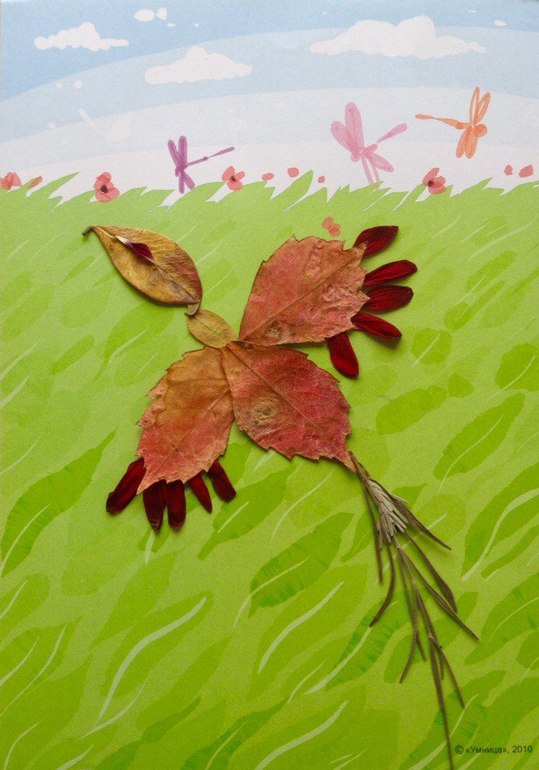 Добрый вечер! С удовольствием принимаем участие в конкурсе и представляем своих птичек. Наши волшебные птички сделаны из высушенных осенних листьев. Первую сказочную птицу мы сделали вместе с дочерью, а вторую с сыном.