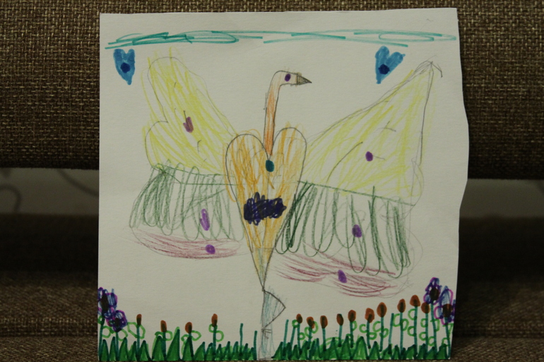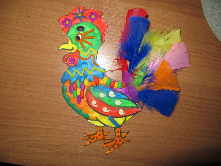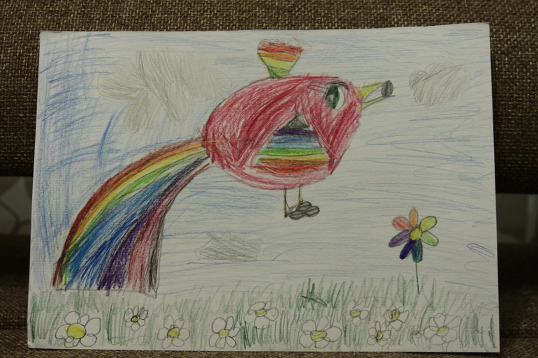 А вот наша птичка. Это Жар-птица (мы как раз прочитали конька-горбунка)