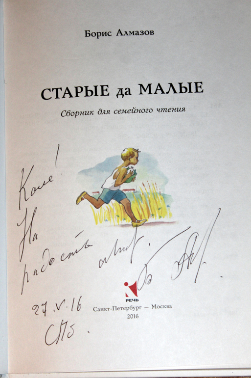 Алмазов у меня тоже отдельно как-то стоит от других любимых писателей. Ведь с ним мне посчастливилось общаться. Он присылает мне фото внуков, всякие картинки смешные, шутит. Даже самой не верится во всё происходящее)