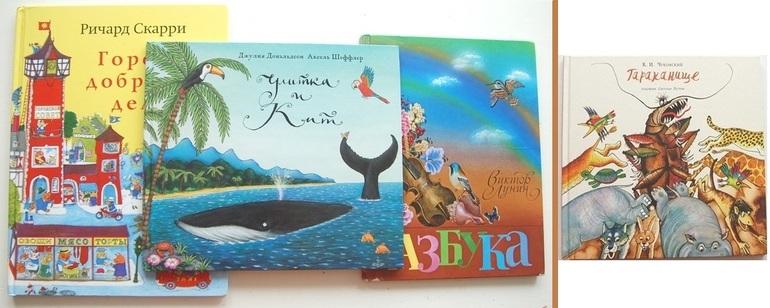 Корней Чуковский "Тараканище". С тех пор, как мы читаем эту книгу, любые неприятные особи называются тараканом и изгоняются заклинанием "Кыш, таракан!". Даже мама периодически выступает в роли таракана. В книге рисунки Светозара Острова. Некоторые, на мой взгляд, страшненькие, а остальные мне нравятся, есть в них даже что-то юмористическое.
