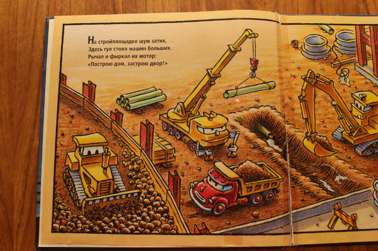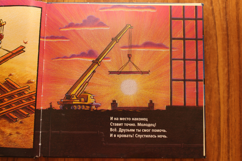 Далее мы укладываем собачку Соню спать на тумбочку и достаём следующую книгу - непременный атрибут засыпания. Речь идёт о чудесной книжке "Стройка, баюшки-баю" Ринкер и Лихтенхелда.