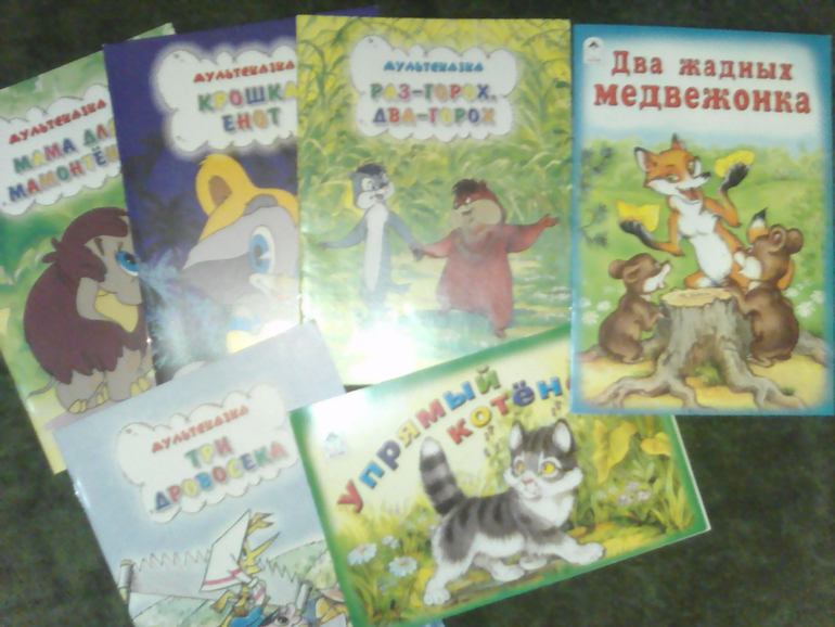 Здесь привлекла неизвестная нам сказка Сутеева про кляксу, Паровозик из Ромашково, про волка и телёнка, про Маленького гнома и про Мышонка.