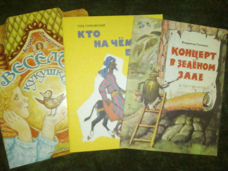 Эти книги прочитали по одному разу. Точнее, попытались. "Кукушку" Ева попросила сама, но дочитать не дала, надоело. Стихи Горбовского тоже прошли мимо. Ну, это ведь стихи, так что сейчас всё вполне объяснимо. Несколько стихов только перечитывали. А про Зелёный зал прочитали один раз, кое-как, и больше не доставали. Честно говоря, мне самой тоже не понравилась книга.