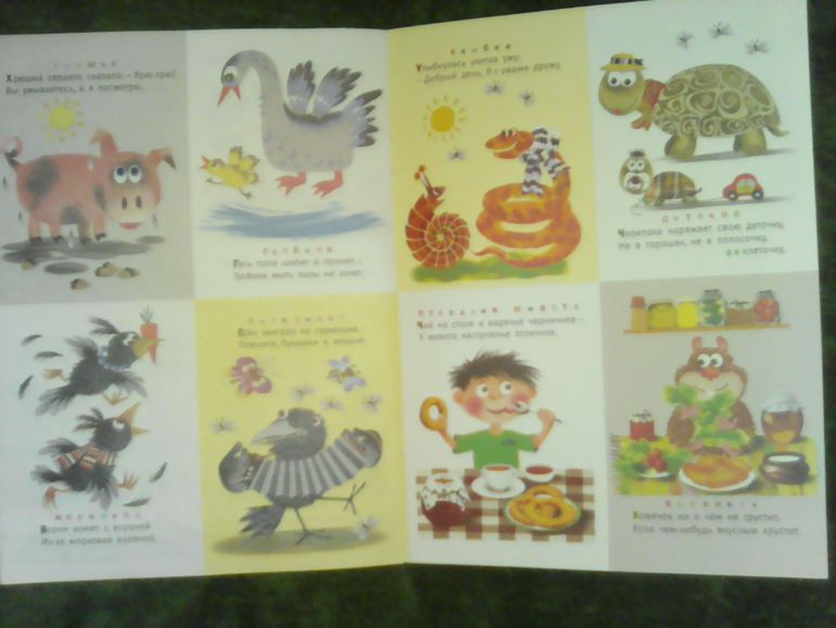 Эти незатейливые рассказы были популярны у нас в 1-1,5 года, ну, может, лет до 2х мы иногда её почитывали, потом забыли. И вдруг Ева достала её, и несколько дней мы, по старой памяти, читали её в каждый приём пищи (а так как мы 2 недели сидели на больничном, ели мы часто