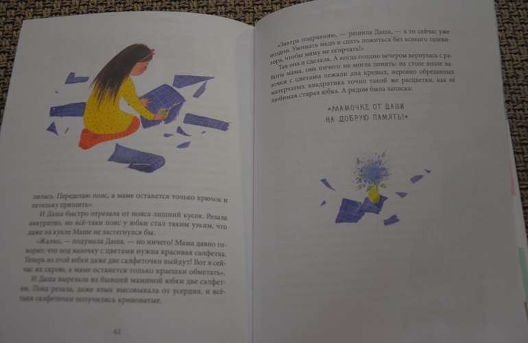 Небольшие рассказы читались постепенно, некоторые немного с грустинкой, , а некоторые смешные. Моей старшенькой больше всех понравились Мамин выходной и Сюрприз. А вообще они все хороши, разные.