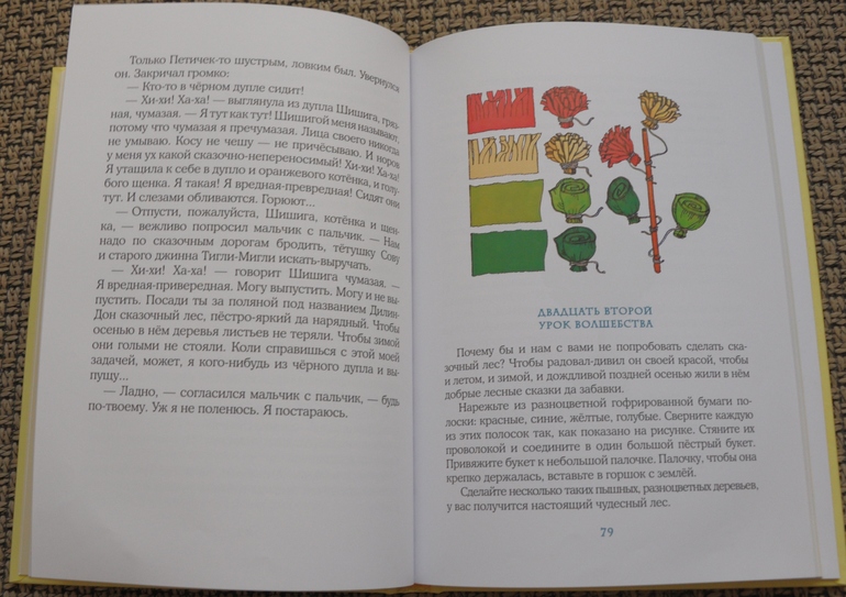 Добротная книга, сказочная история с уроками по изготовлению несложных поделок и даже домашнего театра.