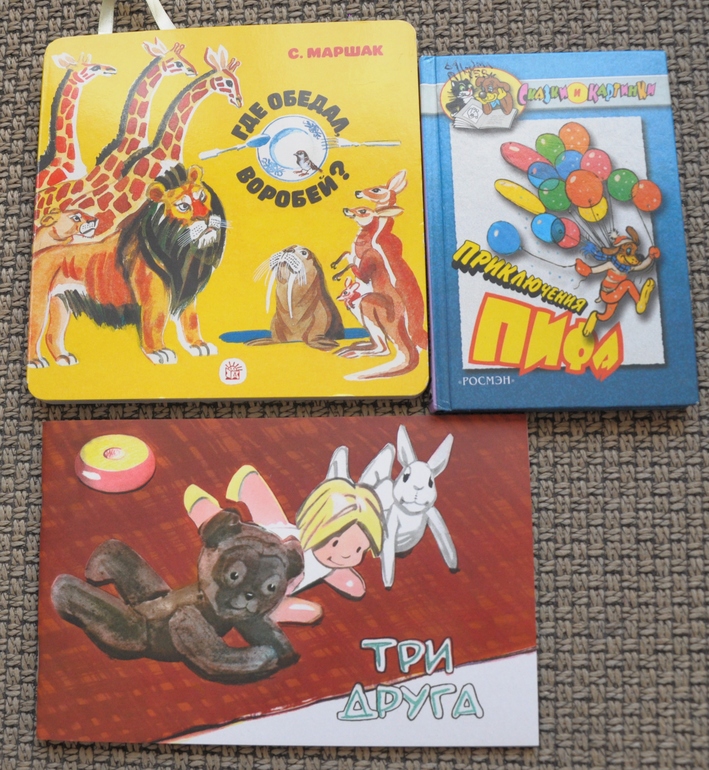 Малышки. Пиф из библиотеки - он нам полюбился. Три друга хорошая, только вот шрифт мелкий, дочка сама не хочет читать... Приходится мне.