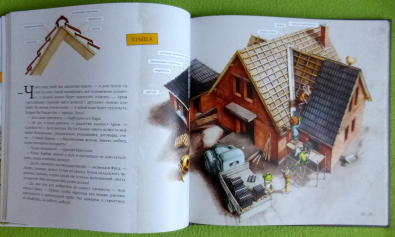 В этой книге не так много терминов и схем, как в книгах автора про транспорт, но все очень подробно и детально. Из книги ребенок познакомится с такими понятиями, как смета, ипотека, архитектурный план.