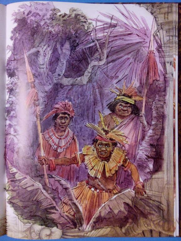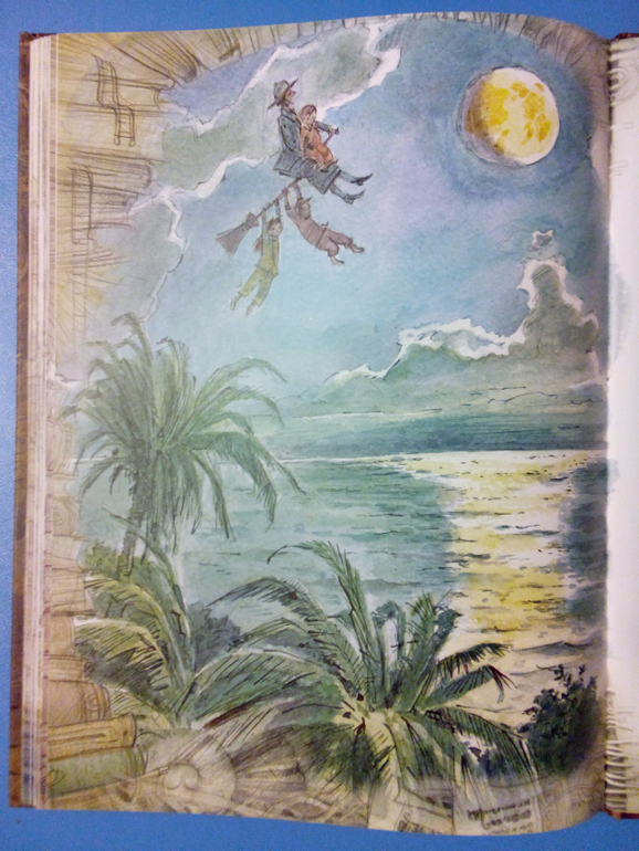 Ну и иллюстрации Вадима Челака. Рисунки крупные, на каждой странице. Частенько почти на весь разворот.