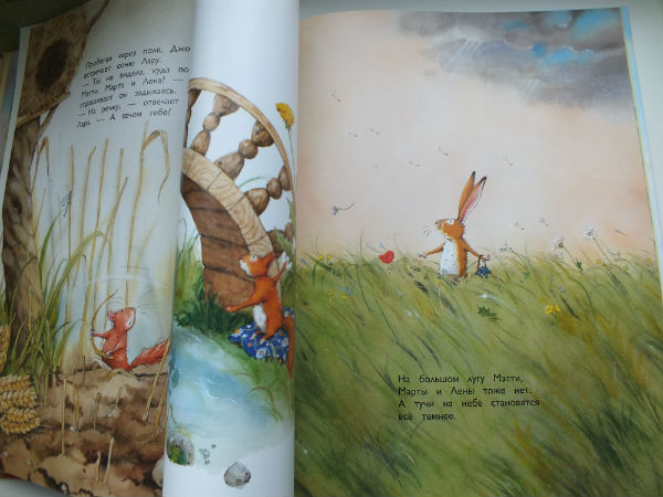 Сначала отмечу просто чудесные иллюстрации. Они такие классные, честно-честно. Затем скажу, что в книге показана прекрасная история про дружбу и о том, что братья и сестры должны заботиться друг о друге. Есть пример отваги и храбрости: маленький зайчонок сам боялся грозы, но побежал спасать своих сестер. Он их нашел, предупредил и они все вместе пошли домой. Вот и вся история, читается быстро-быстро, минут за 10.