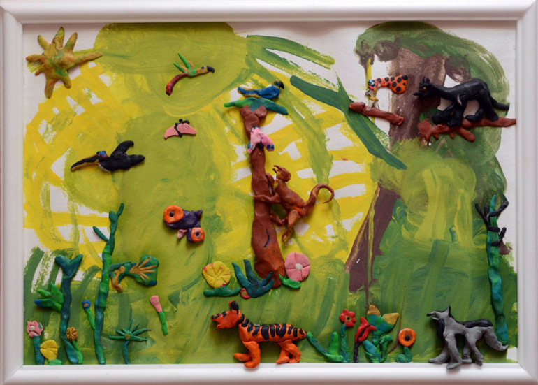 Сначала пред история)) Многие уже знают ( по прошлым дневникам чтения), что Геральд увлечен лепкой. Лепить начал с 3.5 лет, сейчас 5.5 - перерывов практически не было. Уже год точно, всем говорит, что станет скульптором))) Фотографировать его работы начала почти с самого начала ( чему сейчас очень рада, так как можно проследить по фото все стадии развития его лепилок))) Но вот вопрос о том как сохранить все это, постоянно всплывал...Но все количество слепленного сохранить просто не возможно, да и пластилин - довольно неприсобленный материал для хранения. Пробовала несколько вариантов - хранить отельные работы , но со временем они мнуться, пылятся и теряют вид, был вариант - объемных картин, вот , что вышло