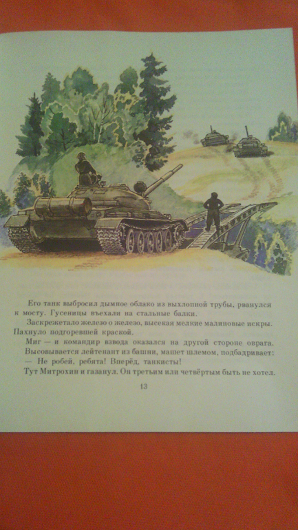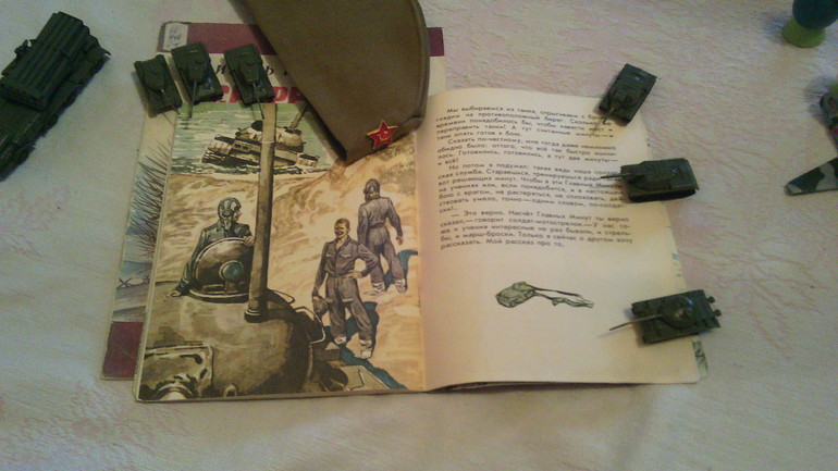 Вся книга состоит из писем танкиста младшему брату о своей службе. О том, как он учился управлять танком потому что стал механиком-водителем. И я сказала, что наш дедушка тоже служил в танковых войсках и был механиком-водителем. Теперь все разговоры с дедушкой сводятся к разговору о танках. Еще он спрашивал у дедушки и бабушки, кто у нас был на войне...и они ему рассказывали. Теперь он знает про это)) и даже иногда использует в играх. "Мама, я кричу "Огонь!". как дедушка Толя на войне" (дед мой был артиллеристом).