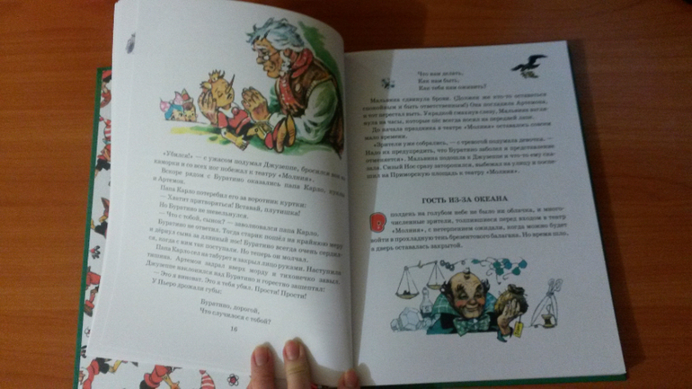 люблю буратино и обожаю изумрудный город)))))))) полюбила его лет в 20, когда все таки решила дочитать, в детстве мама мне его раз 20 навязывала и нифига, а вот в 20 лет прочитала все 6 книг, не возможно оторвать было и вот когда увидела эту книгу а особенно иллюстрации именно те что в моих книжках и так же идеальный формат, тоесть вся серия будет смотрется отлично и хранится вместе, сразу закинула ее в карзину