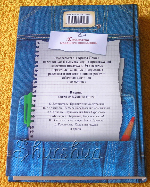Единственное что мне не нравится сильно - обложка в виде простроченной джинсы. Ну что за дизайн для Хоттабыча?? Товарищи люди, Хоттабыч на джинсе - верх бесвкусицы. Я знаю, что это серия и то, что бюджетная серия. Ну всё равно меня кочевряжит от такой обложки) Кабы не Мазурин.. продала бы) Но очень его люблю.