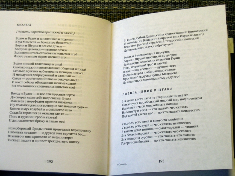 Сборник, включающий и стихи, и стихи-псалмы (переводы Сапгиром стихов известного поэта), и стихи прошлых лет. Оглавление на несколько страниц. Бумага в книге белый офсет. Читается легко. Очень любопытный уютный сборник. Прочтите с фото "Бездыханную реальность", "Горы", "Возвращение в Итаку". Вы захотите прочитать эту книгу. Я лично очень довольна покупкой, тем более, что знакомо мне пока только страниц 30 из неё. Другой мир. Другой Сапгир. Я такого не знала.