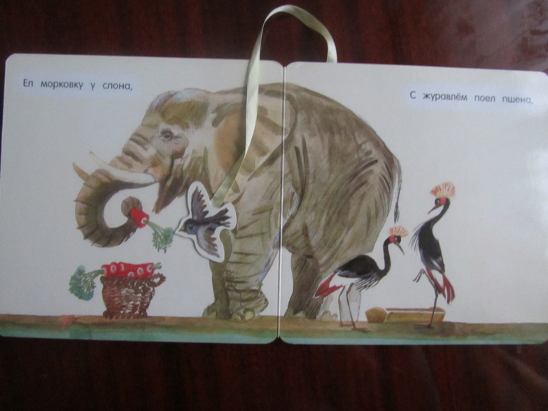 Уже столько восторгов написано по поводу этой книги, но мы с сыном добавим ещё! Красивая, на картоне (что немаловажно нам), с игровым моментом в виде летающего на ленточке воробья и раскрывающего пасть крокодила и гениального стихотворения Маршака - разве всё это может не сделать книгу хитом у каждого маленького ребёнка?!))